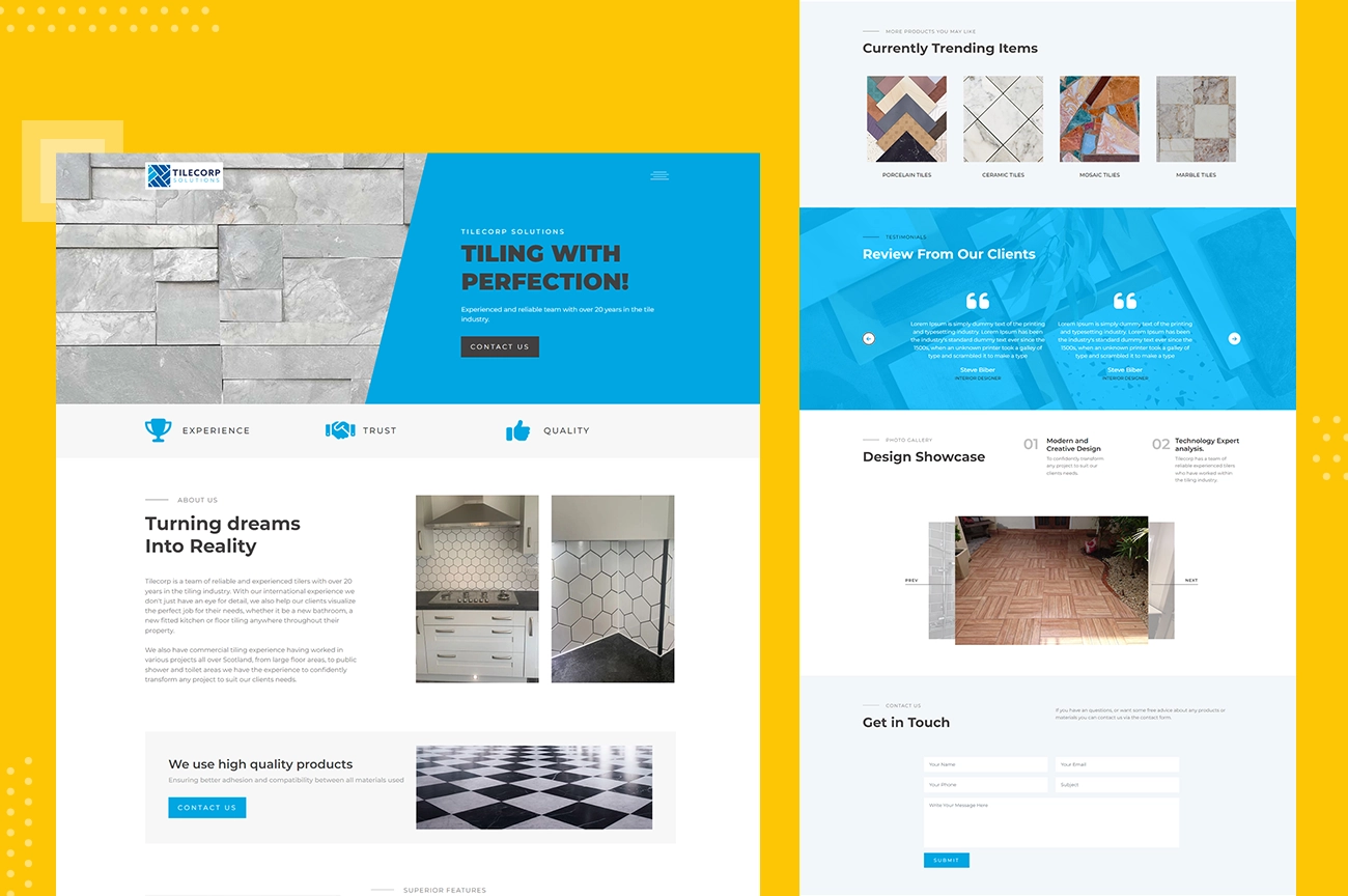Empresa especializada em acabamentos e revestimentos de ambientes domésticos e industriais. O logo deveria apresentar uma roupagem que transmisse a ideia de que são uma empresa com muitos anos de mercado e ao mesmo tempo que existivesse uma espécie de "link" de algum elemento visual que remetesse à algum piso. O site basicamente é um braço digital para apresentar alguns projetos já realizados e falar um pouco sobre a seriedade e qualidade do serviço que a empresa oferece.